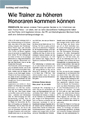 TRAINERBERUF. „Ich mache mich selbstständig. Ich werde Trainer oder Berater.″ Das beschließen viele Männer und Frauen, denen eine berufliche Perspektive fehlt. Doch die Praxis zeigt: Als Berater sein Geld zu verdienen, ist oft ein hartes Brot. Lesen Sie mehr...